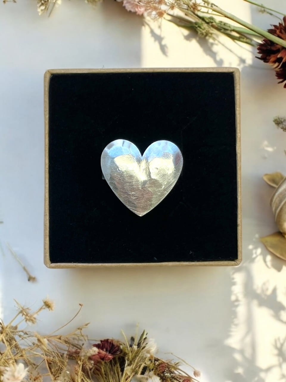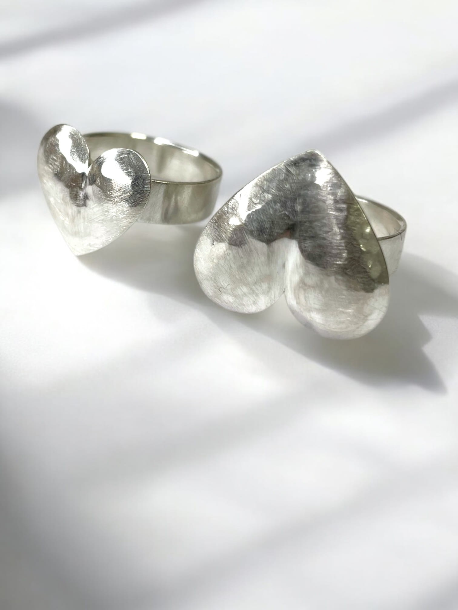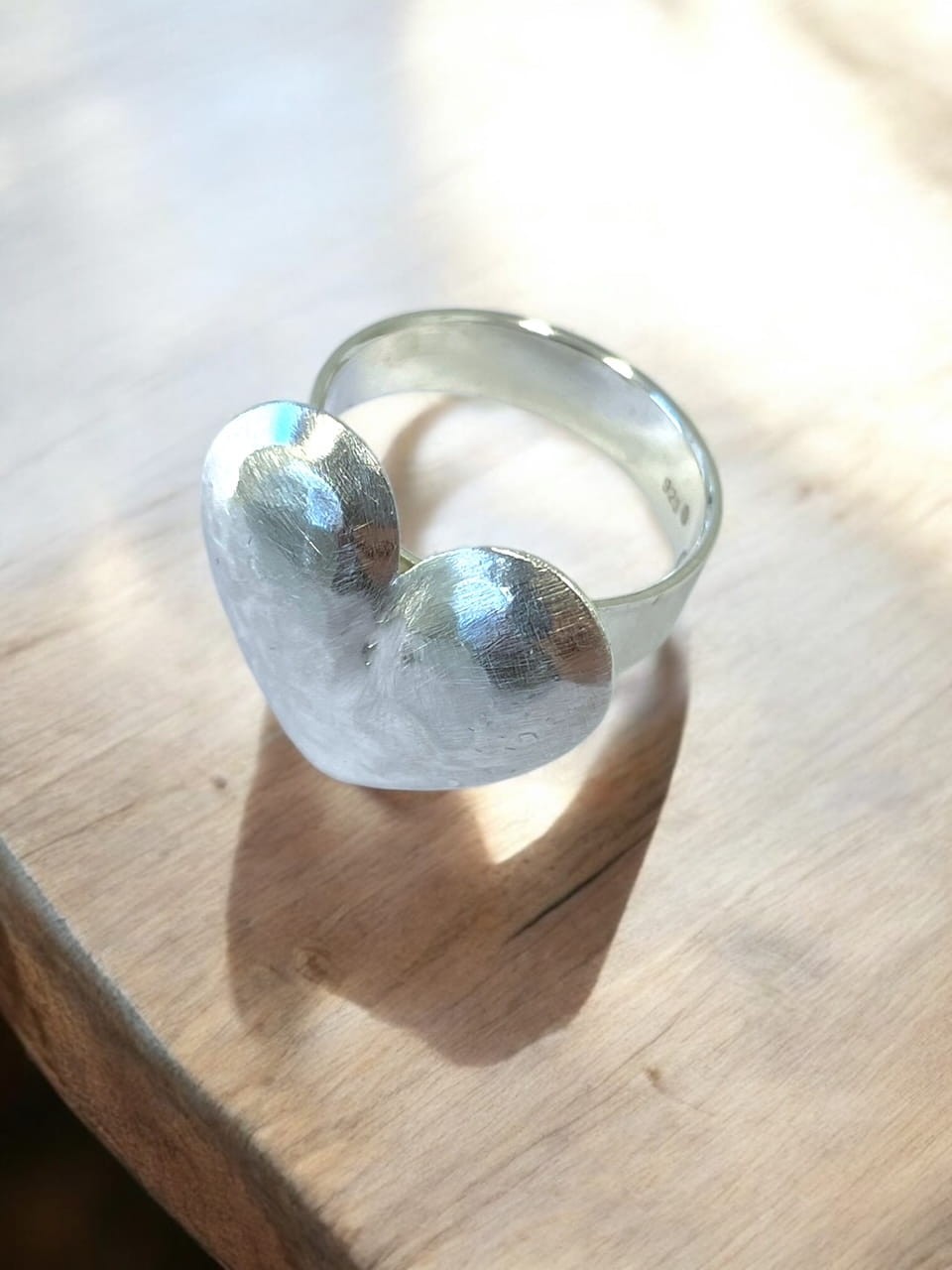 Pierścionek z dużym sercem – srebro młotkowane i szczotkowane