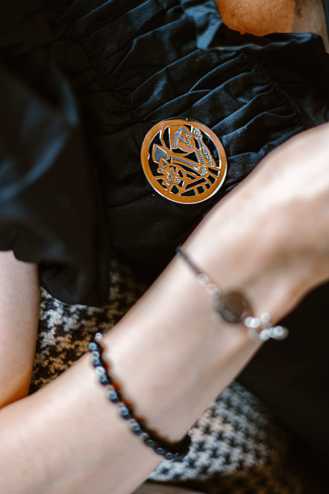 Broszka należy do kolekcji Dam/Król, inspirowanej wizerunkami karcianych postaci – symbolami siły, elegancji i szlachetności.